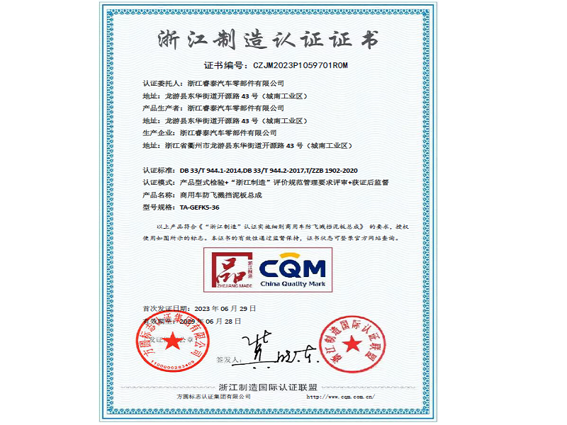 浙江制造認(rèn)證證書(shū)